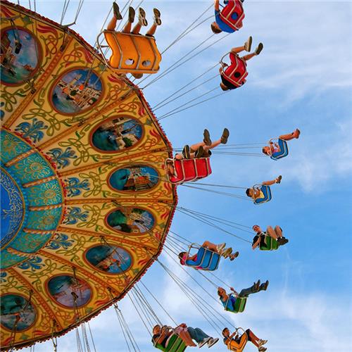 飞旋塔、摩天轮、旋转木马、观光火车、游艺机等。